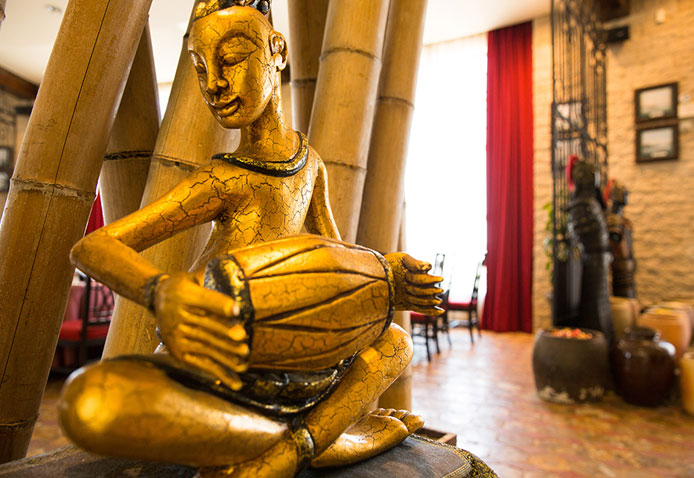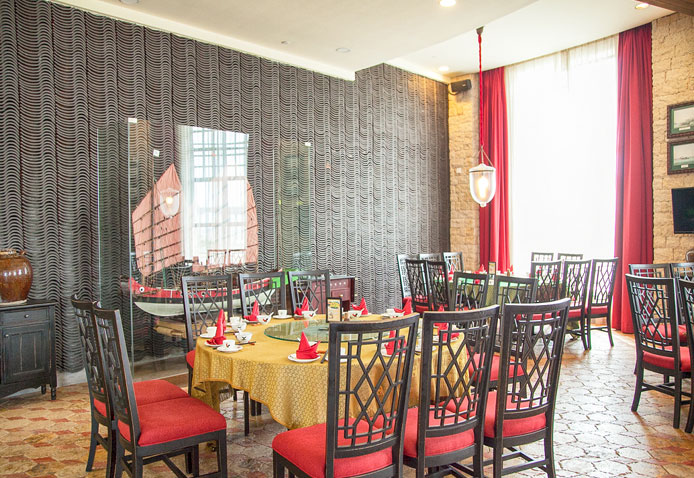 地道風味的泰式美食酸辣冬陰功湯,原汁菠蘿炒飯,濃郁咖喱蝦……一道道色香味俱全的泰式美味帶來濃濃的東南亞風情,“大兵船”餐廳以赫赫有名的大明水師戰艦為名,致力將異域美食、復古室內裝潢及迷人海景共冶一爐,打造炙手可熱的美味熱點,集中發掘東南亞海域的美食瑰寶,嚴選新鮮食材,來自泰國曼谷的主廚自創烹調手法,炮制出令人耳目一新的地道泰國美食,享受美味之余,還可欣賞泰國舞者帶來的萬般柔美的泰國舞,如此集味覺、視覺于一體的美食之旅,真可謂美不勝收。